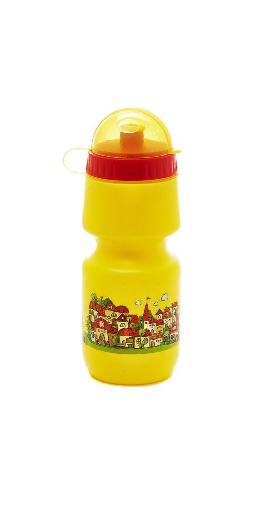 • Фляга детская с защитой от пыли 500мл, желтая, рисунок "город" VSB50 yellow