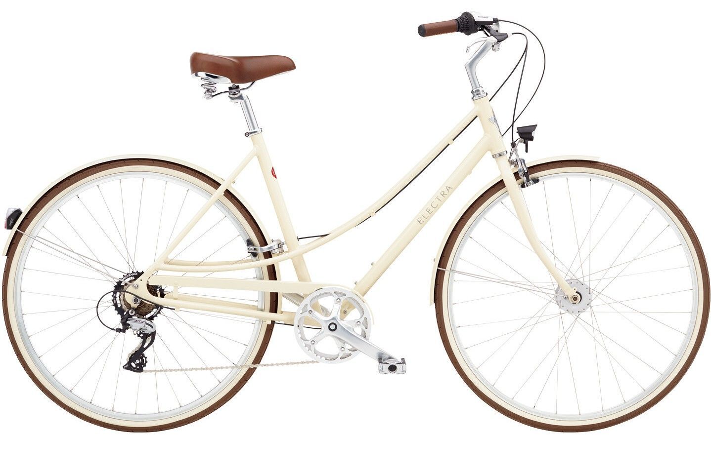 Бренд ELECTRA Модель Loft 7D EQ Год Без года Серия Loft Материал рамы Алюминий (Alloy) Рама/описание 6061-T6 aluminum w/ patented Flat Foot Technology® Тип вилки Жесткая (сталь) Вилка/регулировки High-tensile steel unicrown, straight/tapered leg Диаметр колес 700C Обода Double-wall alloy, 700c x 32h Покрышки 700 x 35c City tread Тормоза Ободные (V-brake) Уровень оборудования Начальный Шифтеры Shimano Revo 7-speed twist shifter Переключатель задний Shimano Tourney TX 7-speed Кассета Shimano 7-speed 14-34T Цепь KMC Z7 nickel plated Каретка Sealed cartridge 68 mm/116 mm Шатуны Forged alloy, 170 mm w/44T, alloy chainguard Количество скоростей 7 Руль Alloy custom bend 30 mm rise Рулевая колонка '1'' steel threaded' Вынос Steel 25.4 mm quill Седло Retro leatherette dual spring Подседельный штырь Alloy micro adjust 27.2 mm x 300 mm Педали Alloy platform w/non-slip rubber tread Втулка передняя Shimano Nexus Dynamo, 32h Пол/возраст Женский Втулка задняя Alloy 32h, nutted Грипсы длина/тип Hand-stitched leatherette -